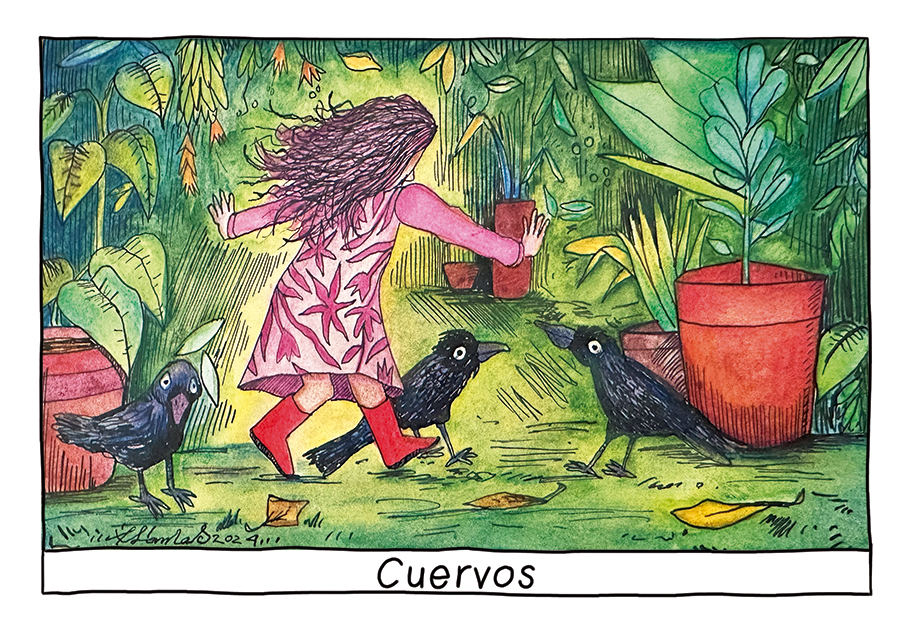 En mi cumpleaños, cuando cumplí 10, mis papás me regalaron el telescopio para ver las estrellas desde mi silla de ruedas. No sé si hasta los planetas. Pero yo prefiero ver a Anita. No me gusta tanto ver a los cuervos, me gusta más lo que siento cuando los veo. Quisiera poder volar como ellos. Deslizarme desde lo alto y caer en las manos de Anita.